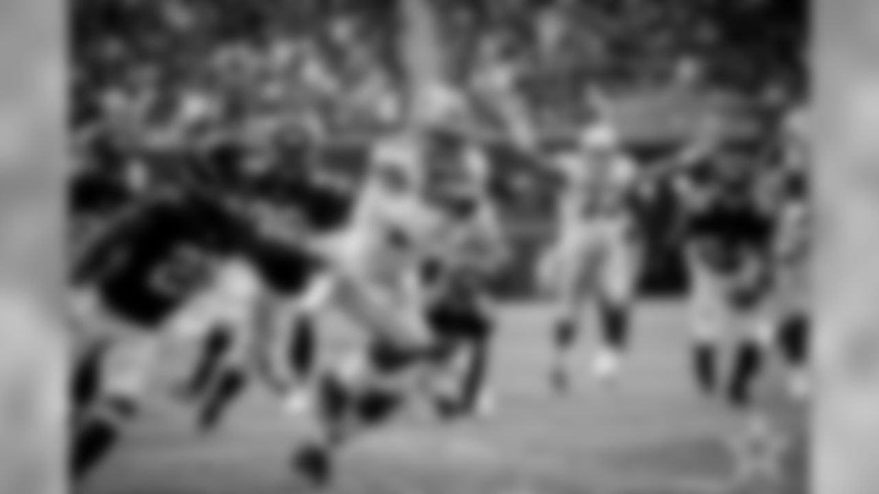 2018 Highlight: When you lead the NFL in rushing, there are several highlights throughout the season. But the Nov. 11 game at Philadelphia was definitely a turning point for the Cowboys, who had lost two straight games and needed a win over the defending champs in the worst way. Zeke came through for the Cowboys, rushing for 151 yards and a touchdown, while catching six passes for 38 yards and another TD. His best highlight was even a score but when he jumped straight over an Eagles defender in the middle of the field.