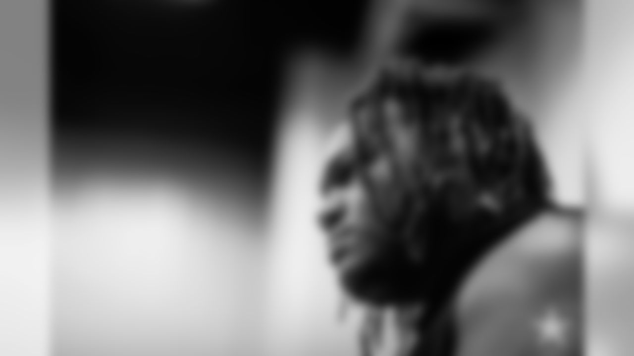 Georgia running back D'Andre Swift speaks to the media during a press conference at the NFL football scouting combine, Wednesday, Feb. 26, 2020, in Indianapolis. (Aaron M. Sprecher via AP)