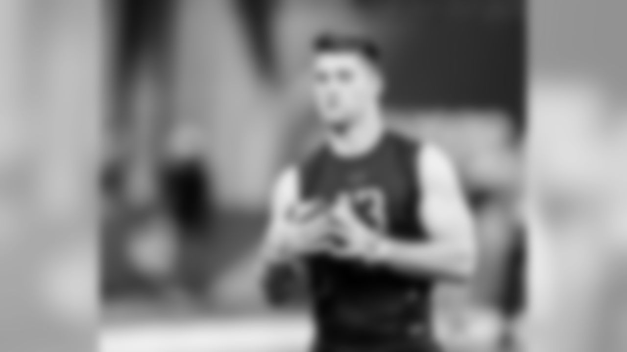 Stanford tight end Dalton Schultz (TE13) participates in a drill at the NFL football scouting combine, Saturday, March 3, 2018 in Indianapolis. (AJ Mast via AP Images)