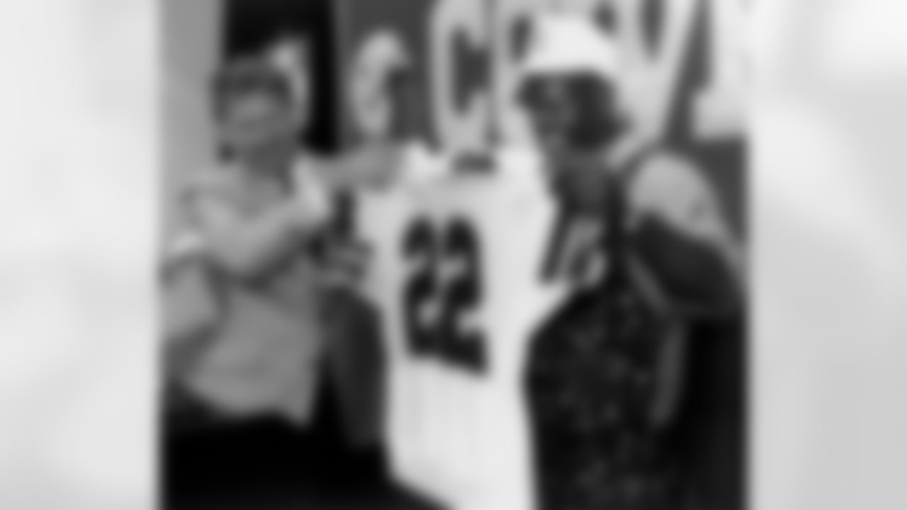 Dallas Cowboys undrafted free agent La'el Collins (in cap), his mother Loyetta Collins (left), Cowboys owner Jerry Jones (second from right) and Cowboys head coach Jason Garrett (right) hold Collins' jersey at Cowboys headquarters in Irving, Texas on Thursday, May 7, 2015. (AP Photo/James D Smith)