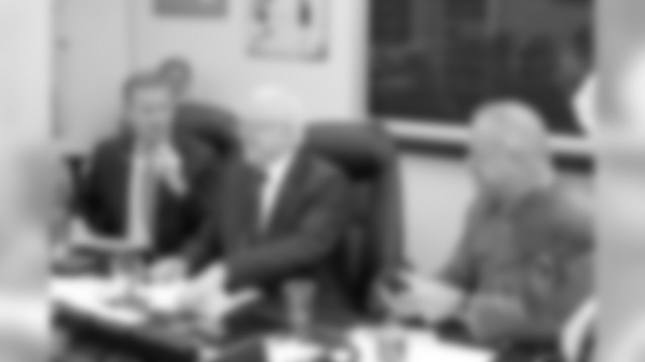 Overall view of Dallas Cowboys team executives as they watch the NFL draft in the Cowboys war room at Valley Ranch in Irving, Texas on Thursday, April 30, 2015. (AP Photo/James D Smith)