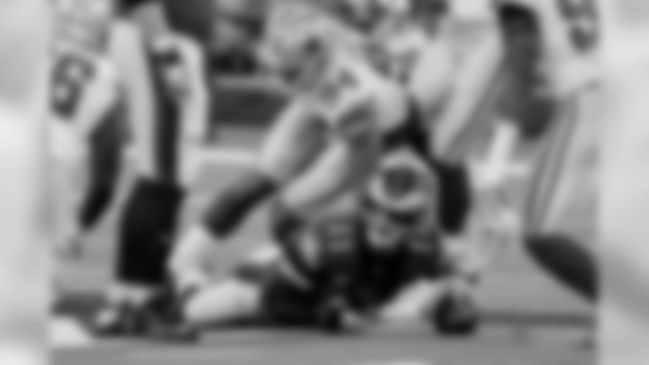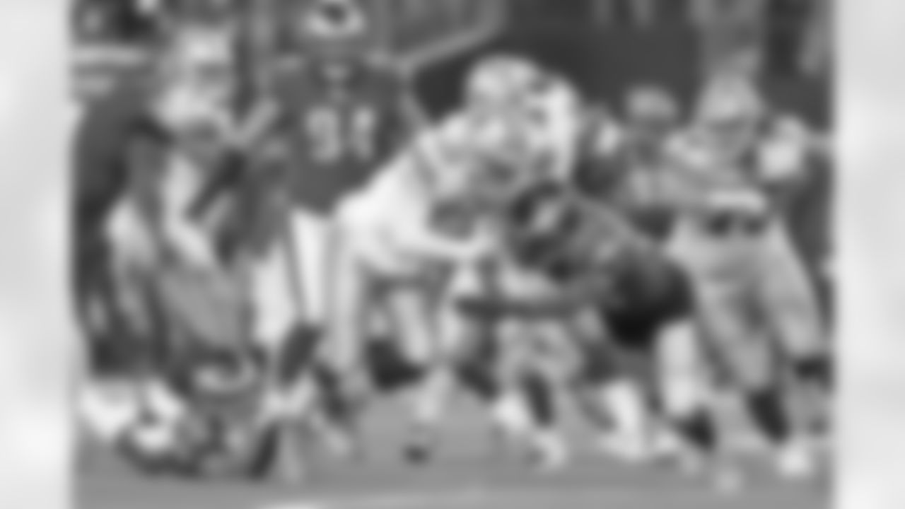 Dallas Cowboys defensive tackle Maliek Collins (96) and defensive end Randy Gregory (94) chase a ball fumble by Philadelphia Eagles quarterback Carson Wentz during the first half of an NFL football game, in Arlington, Texas, Sunday, Dec. 9, 2018. Collins (96) recovered the ball. (AP Photo/Michael Ainsworth)