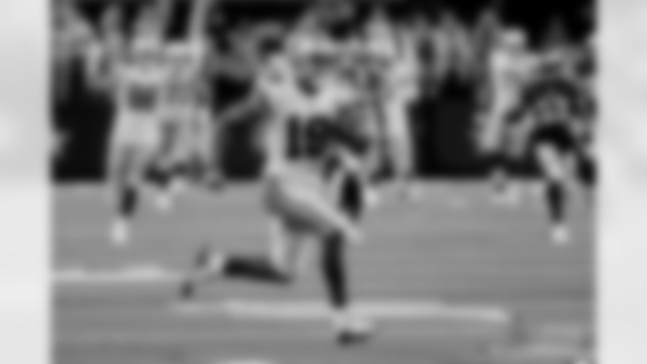 Dallas Cowboys wide receiver Amari Cooper (19) scores on a 75-yard touchdown catch against the Philadelphia Eagles during the second half of an NFL football game, in Arlington, Texas, Sunday, Dec. 9, 2018. (AP Photo/Ron Jenkins)