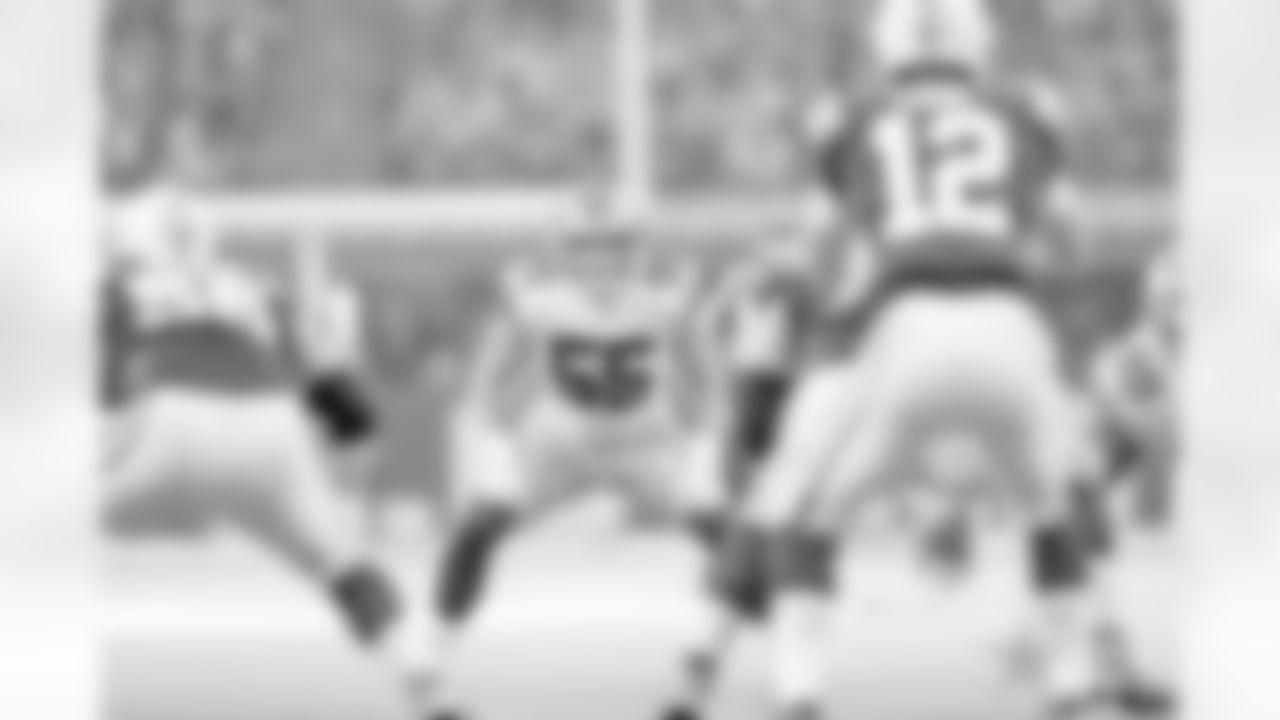 Indianapolis Colts' Anthony Castonzo (74) blocks Dallas Cowboys' Randy Gregory (94) during the first half of an NFL football game, Sunday, Dec. 16, 2018, in Indianapolis. (AP Photo/Michael Conroy)
