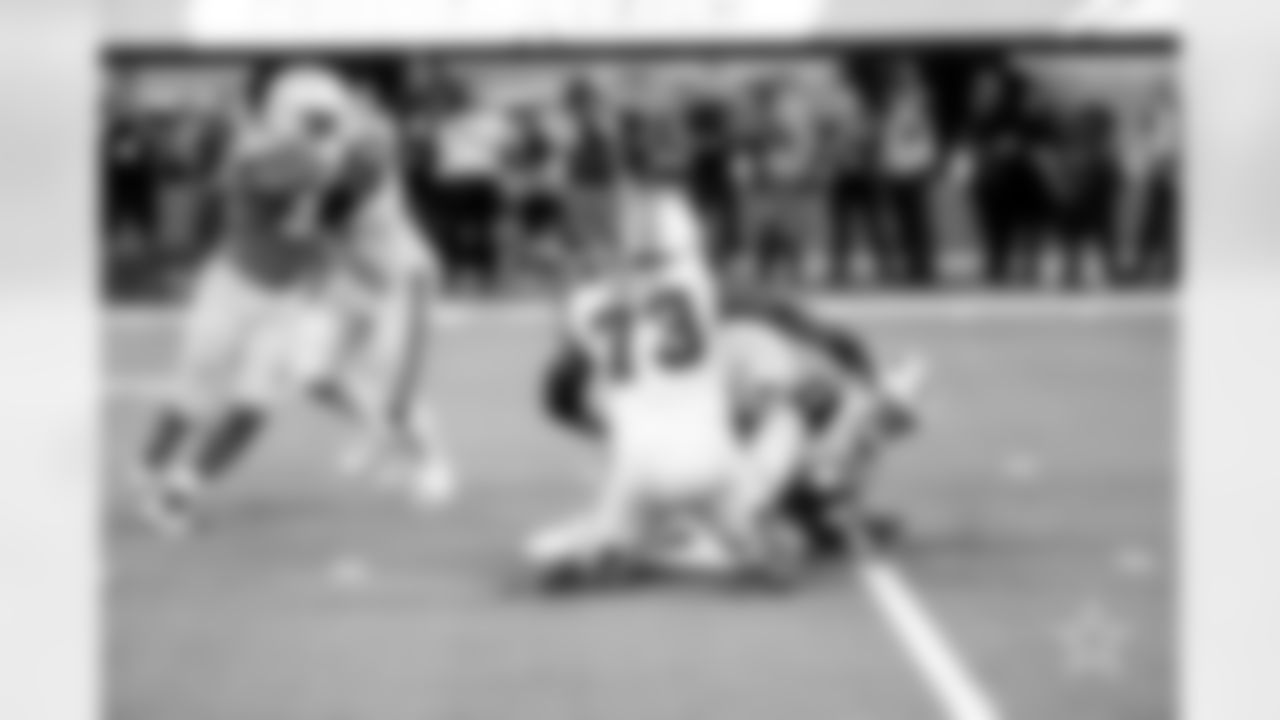 Dallas Cowboys running back Rico Dowdle (23) gets around the tackle attempt by Los Angeles Chargers defensive tackle Scott Matlock (99) during the first half of an NFL football game Monday, Oct. 16, 2023, in Inglewood, Calif. (AP Photo/Ashley Landis)