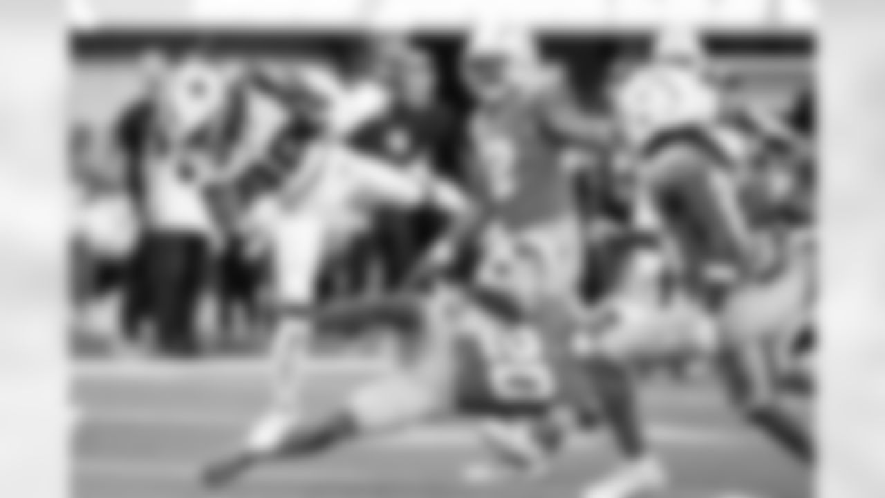 Los Angeles Chargers cornerback Michael Davis (43) tackles Dallas Cowboys running back Tony Pollard (20) during the second half of an NFL football game Monday, Oct. 16, 2023, in Inglewood, Calif. (AP Photo/Ashley Landis)