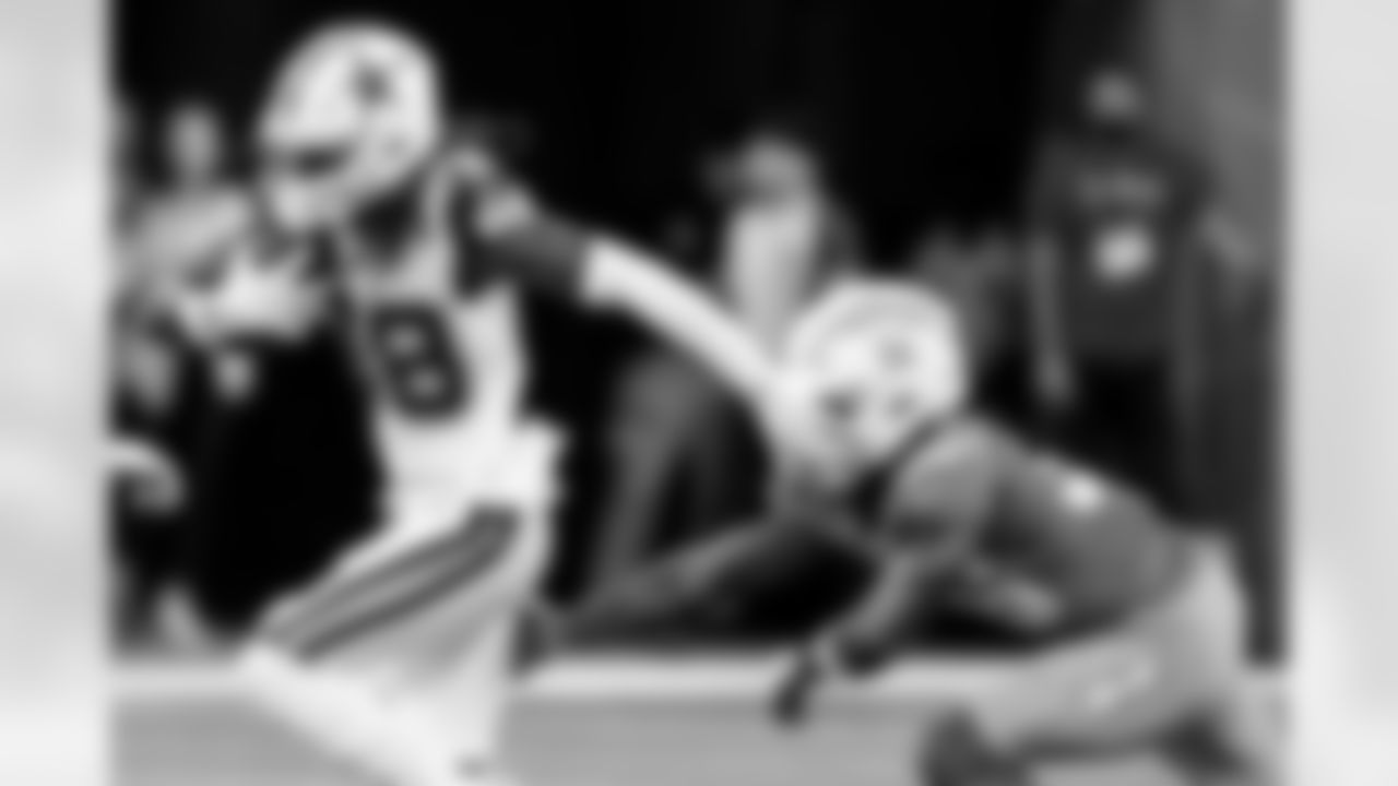 Dallas Cowboys running back Tony Pollard (20) is a tackled by Los Angeles Chargers cornerback Asante Samuel Jr. (26) during the second half of an NFL football game Monday, Oct. 16, 2023, in Inglewood, Calif. (AP Photo/Ashley Landis)