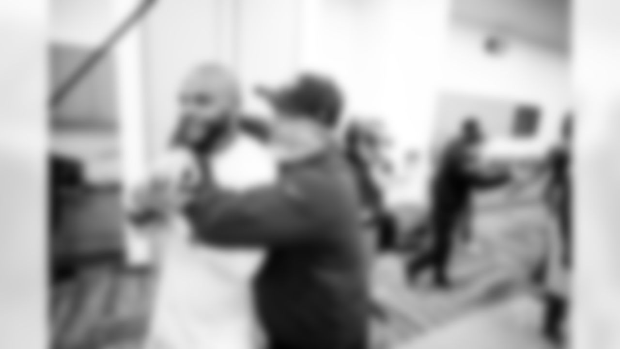 Dallas Cowboys running back Tony Pollard (20) andLos Angeles Chargers running back Austin Ekeler (30) embrace after an NFL football game, Monday, Oct. 16, 2023, in Inglewood, Calif. (AP Photo/Kyusung Gong)