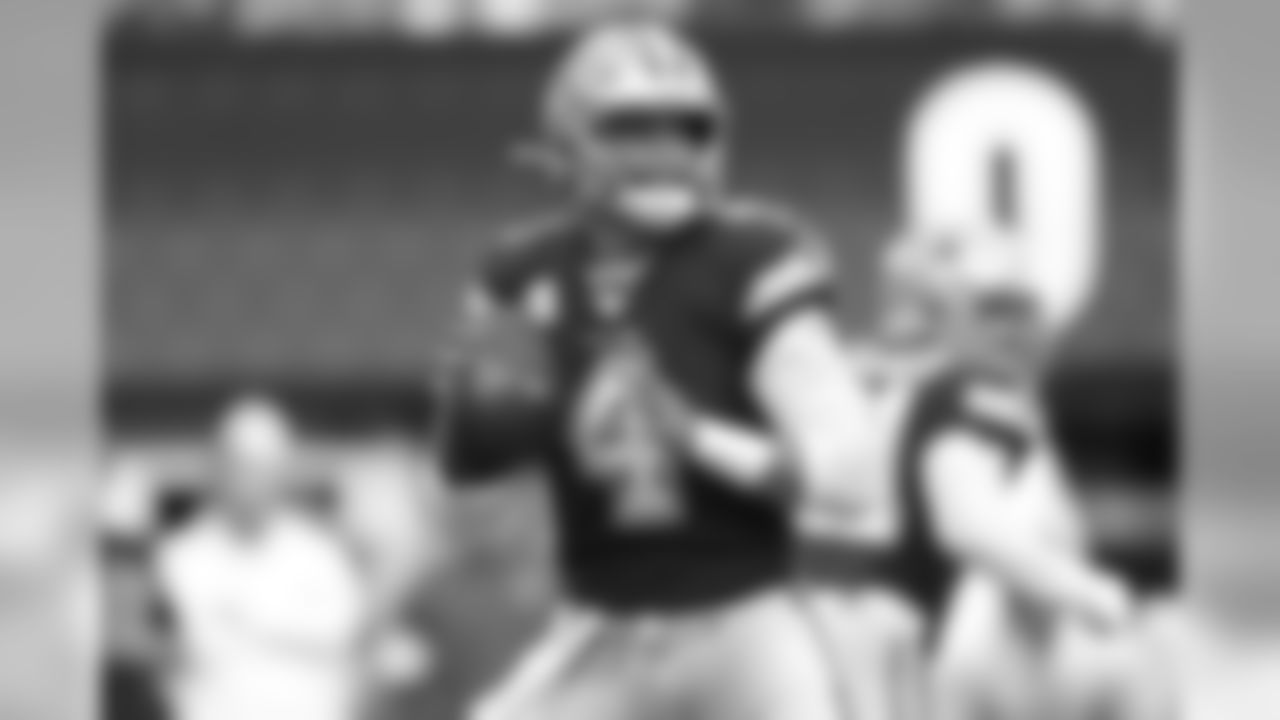 Dallas Cowboys quarterback Dak Prescott (4) during the first half of an NFL football game against the New York Jets, Sunday, Oct. 13, 2019, in East Rutherford, N.J. (AP Photo/Adam Hunger)