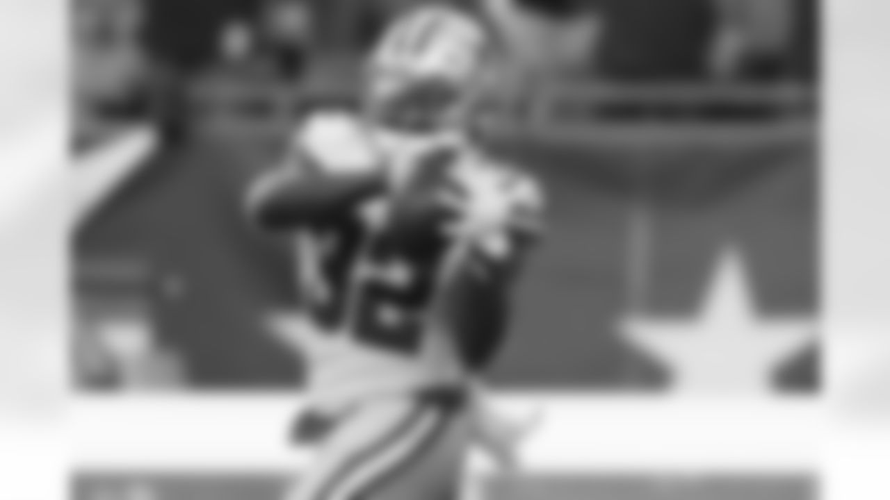 Dallas Cowboys quarterback Dak Prescott (4) throws prior to an NFL football game, Sunday, Oct. 17, 2021, in Foxborough, Mass. (AP Photo/Steven Senne)