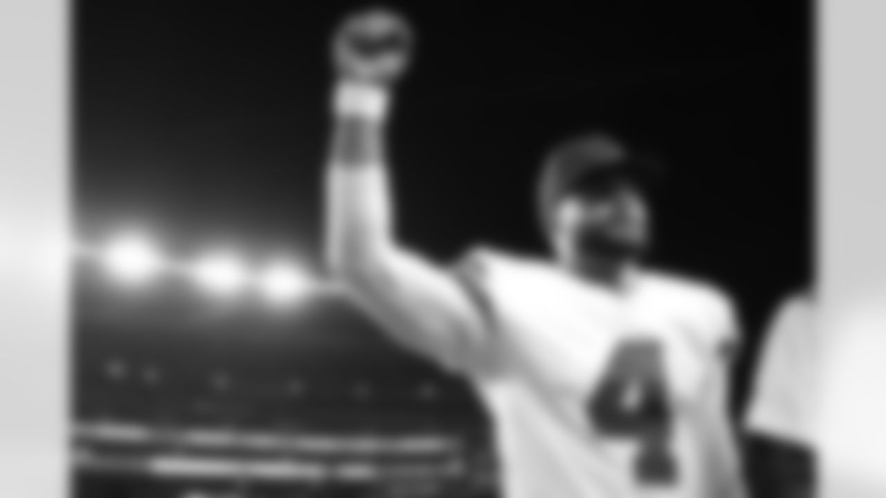 Dallas Cowboys quarterback Dak Prescott (4) warms up prior to an NFL football game against the New England Patriots, Sunday, Oct. 17, 2021, in Foxborough, Mass. (AP Photo/Steven Senne)