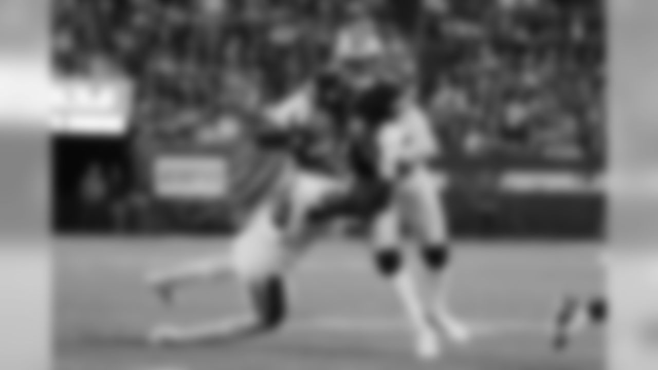 New York Giants free safety Antoine Bethea (41) is tackled by Dallas Cowboys offensive tackle Tyron Smith (77) after intercepting a pass during the first quarter of an NFL football game, Monday, Nov. 4, 2019, in East Rutherford, N.J. (AP Photo/Bill Kostroun)